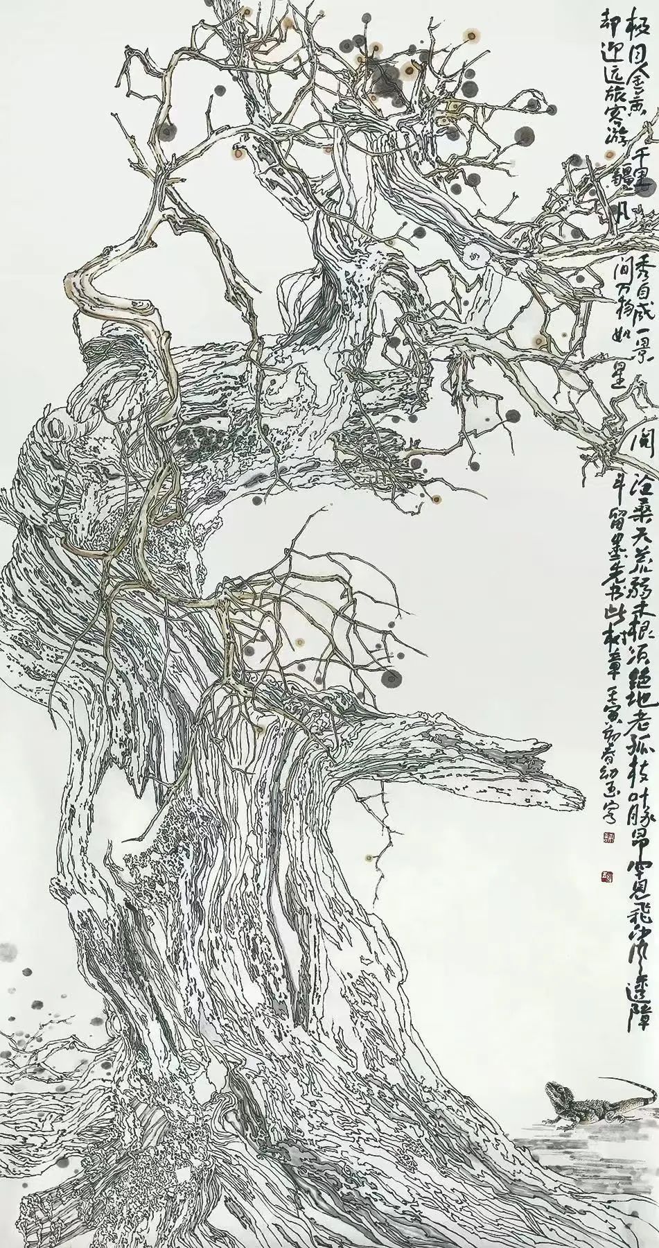 極木金黃千里秀 183cmx96cm 許幼玉 中國畫白描