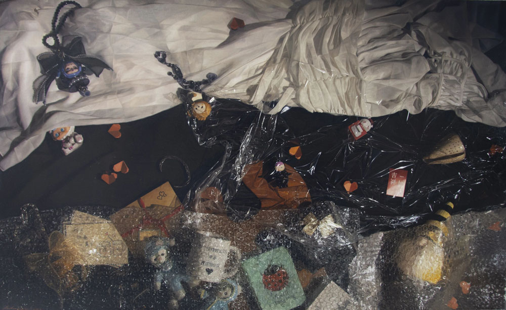 劉昊天的油畫運用古典寫實技法描繪當(dāng)代“景觀”,浮生系列”以人物、靜物的描繪為主,且每一幅都在主體物之上覆了一層“塑料薄膜”,這是藝術(shù)家精心構(gòu)思和觀念生發(fā)的產(chǎn)物,極具當(dāng)代意味。人物為主的幾幅作品中均以少女作為畫面主體,從她們的眼神中,可以看到一絲迷茫、驚恐、疲累、壓抑,并且她們被一層不透氣的“塑料薄膜”遮蓋住面部和身體,再加上藝術(shù)家對畫面人物手勢的刻畫,表現(xiàn)出少女想要掙脫或即將掙脫束縛的感覺。這就像一個面具,人們帶著面具生活總是很壓抑;這也像一張無形的網(wǎng),當(dāng)代社會的極速發(fā)展下人們的壓力倍增,很多社會問題凸顯。靜物為主的幾幅作品中,以當(dāng)代流行的卡通形象的選取是其特色之處,如《浮生系列·青春物語》中的靜物以卡通玩偶、明信片、紀(jì)念物為主,這些帶有懷舊意味的靜物將我們帶回青春歲月,靜物上覆蓋的“塑料薄膜”更體現(xiàn)這些靜物是珍藏著青春記憶。但同時,也讓我們看到像“塑料薄膜”這種現(xiàn)代產(chǎn)物在給人類帶來便利的同時也有可能產(chǎn)生環(huán)境污染,同樣讓我們思考人類與自然環(huán)境的關(guān)系問題。在形式語言表現(xiàn)上,劉昊天對人物或靜物運用寫實主義手法刻畫,扎實且飽滿,充分展現(xiàn)藝術(shù)家的情感世界以及對當(dāng)代社會問題的思考。藝術(shù)家對于畫面構(gòu)圖設(shè)計也很有想法,截取人物最中心部分作主體,以人物表情作整幅作品情感基調(diào)的外顯。畫面背景部分,藝術(shù)家通常以黑色或深色打底,有的配以淺色襯布,與主體物的色彩相和諧。劉昊天對于光影的處理很嫻熟,人物面部的光和“塑料薄膜”的光搭配的恰到好處,使得整個畫面協(xié)調(diào)流暢。 劉昊天的“浮生系列”是其寫實油畫階段探索的又一全新成果,以“浮生”為主旋律的一批帶有“塑料薄膜”的作品,為我們展現(xiàn)當(dāng)下社會在飛速發(fā)展之下,人類在大環(huán)境面臨的種種壓力,由之帶來對于社會、環(huán)境等問題的思考。有喜有憂,有笑有淚,我們?nèi)缤涣m埃,在宇宙之間如此渺小但又不可替代。浮生若夢,浮生未歇,人生始終沒有定論,我們可以虛度和享受時光,進(jìn)而試圖尋找人生真正的價值。 劉昊天的油畫體現(xiàn)著其創(chuàng)作的發(fā)展是內(nèi)在的、自律的、進(jìn)步的,其思想變化、創(chuàng)作態(tài)度和趣味反映在藝術(shù)表現(xiàn)上。在觀看他的作品時,能夠引發(fā)我們思考人性的價值和人性的局限,這或許就是劉昊天創(chuàng)作的現(xiàn)實立場和責(zé)任。他從不同角度觀察和凝視生活,以當(dāng)代的眼光和審美將這些細(xì)節(jié)呈現(xiàn),讓我們體會生命的清醒和通透,還有靈魂的自由和浪漫。Liu Haotian's oil paintings use classical realistic techniques to depict contemporary "landscapes". The "Floating Life Series" mainly depicts figures and still lifes, and each of them is covered with a layer of "plastic film" on the main object. This is the product of the artist's careful conception and concept generation, and is very contemporary. In several works that are mainly figures, girls are the main subjects of the picture. From their eyes, you can see a trace of confusion, fear, fatigue, and depression, and their faces and bodies are covered by a layer of airtight "plastic film". Coupled with the artist's portrayal of the gestures of the figures in the picture, it shows that the girls want to break free or are about to break free from the bondage. It's like a mask. People always feel depressed when they live with masks; it's also like an invisible net. Under the rapid development of contemporary society, people's pressure has doubled, and many social problems have emerged. In several works that are mainly still lifes, the selection of contemporary popular cartoon images is its characteristic. For example, the still life in "Floating Life Series·Youth Story" is made of cartoon dolls, postcards, and souvenirs. These nostalgic still lifes bring us back to our youth, and the "plastic film" covering the still lifes further reflects that these still lifes are treasured memories of youth. But at the same time, it also allows us to see that modern products like "plastic film" may also cause environmental pollution while bringing convenience to humans, and also makes us think about the relationship between humans and the natural environment. In terms of formal language expression, Liu Haotian uses realism to portray characters or still lifes, which is solid and full, fully showing the artist's emotional world and thinking about contemporary social issues. The artist also has ideas about the composition design of the picture, taking the most central part of the character as the main body, and using the character's expression as the manifestation of the emotional tone of the whole work. For the background part of the picture, the artist usually uses black or dark as the base, and some are matched with light-colored lining cloth, which is in harmony with the color of the main object. Liu Haotian is very skilled in handling light and shadow, and the light on the character's face and the light of the "plastic film" are matched just right, making the whole picture harmonious and smooth.Liu Haotian's "Floating Life Series" is another new achievement of his exploration in the realistic oil painting stage. A group of works with "plastic film" with "floating life" as the main theme show us the various pressures faced by human beings in the environment under the rapid development of the current society,