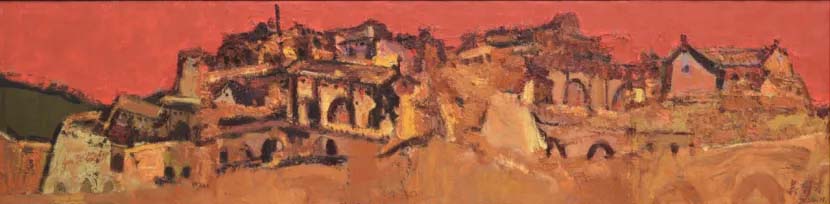 畫面紅黃的組合強調(diào)其結(jié)構(gòu)的塊面感,又厚實堆疊起的山巒是有才近期給我最深的感覺,作品的結(jié)構(gòu)在不斷地變化。情境的轉(zhuǎn)變勢在必得他將日趨走向成熟,他擺脫模塊中程式走向自然,在更自由地發(fā)揮著繪畫語言的獨特魅力,能從眾多的寫實繪畫中汲取經(jīng)驗得以提煉他的造型、色彩與畫面多層的復疊和凸顯出他有意無意在擺脫傳統(tǒng)繪畫的苦澀走向更重精神的寫意油畫風格的表現(xiàn)形式,這使其作品充滿生機盎然的當下氣息,這種藝術(shù)表現(xiàn)更具有直接性和當代性。
