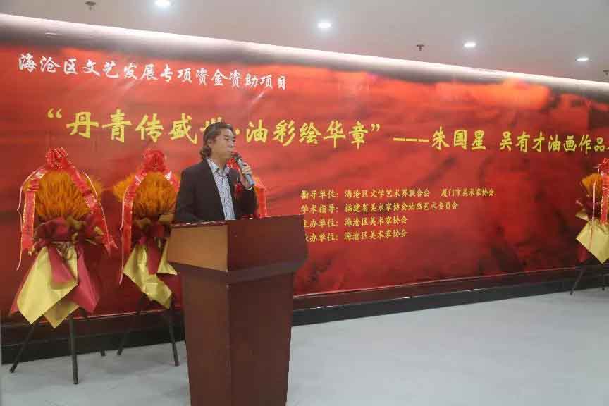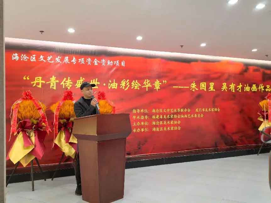 12月10日,在這“玉樹瓊枝”的美好時(shí)節(jié),我們滿懷喜悅,相聚在海滄區(qū)文化藝術(shù)中心一樓展廳,共同慶祝新中國成立75周年系列活動(dòng)的“丹青傳盛世,油彩繪華章—朱國星 吳有才油畫作品展”