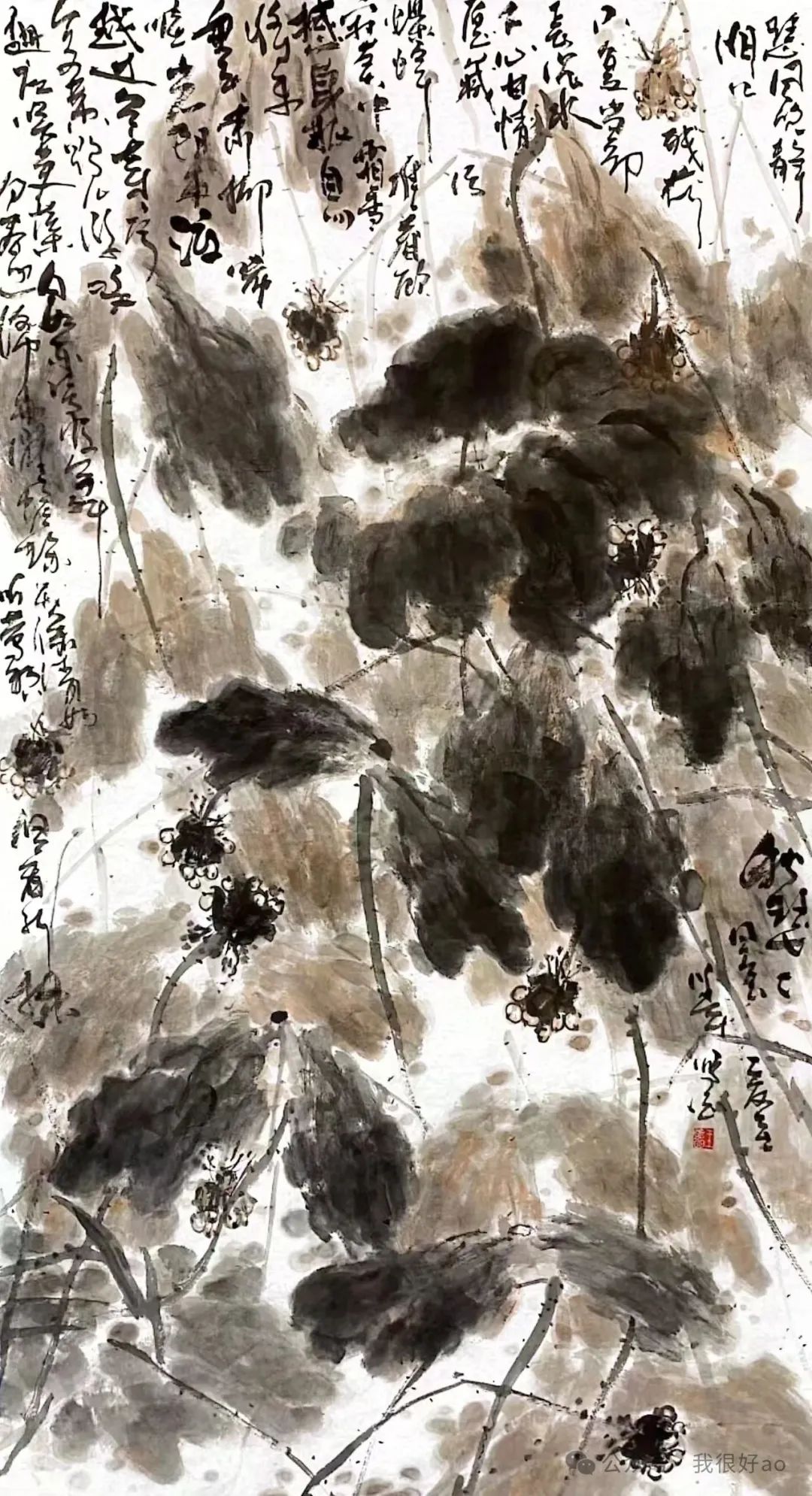 “通過簡單的墨色塑造荷葉的形態(tài),而墨與色的交融碰撞,并非是刻意去營造和精準(zhǔn)的描繪,而是在隨性的筆觸中借助濕潤的條件形成的自然暈染,這種看似“偶然天成”的方式實則是對傳統(tǒng)寫意精神的傳承和創(chuàng)新”
