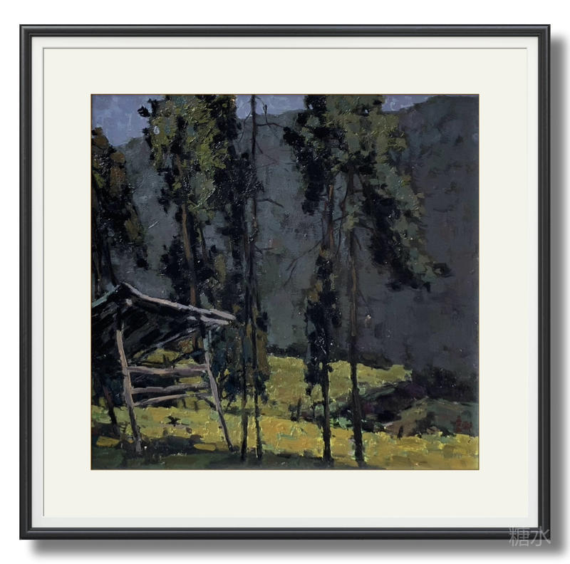 那日自草堂下山采風(fēng),暮色漫過山脊時,油菜花田已浸在暗光里。山體在暮色中褪去輪廓,松針在風(fēng)中颯颯作響,像是用刻刀在暮色里鑿出蒼勁的輪廓。連那片金黃的油菜花都壓低了身段,沉甸甸地墜在天地之間。這畫面像塊生鐵烙進心底,次日寫生時便刻意追著暮色,筆觸如鈍刀劈開混沌,在昏暗里硬生生剖出山體的筋骨、松針的鋒芒,連那片油菜花也化作一塊塊凝固的黃金,在暮色中顯出骨子里的渾厚與蒼勁。