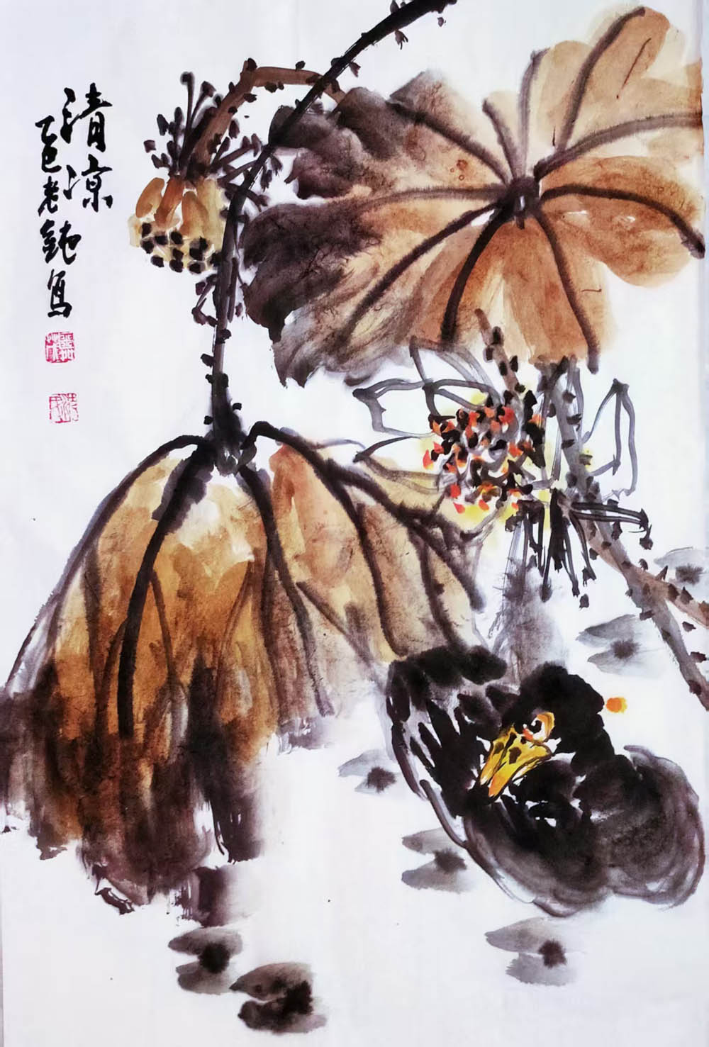 《惠風(fēng)荷暢》 乙巳夏老鈍寫意荷花