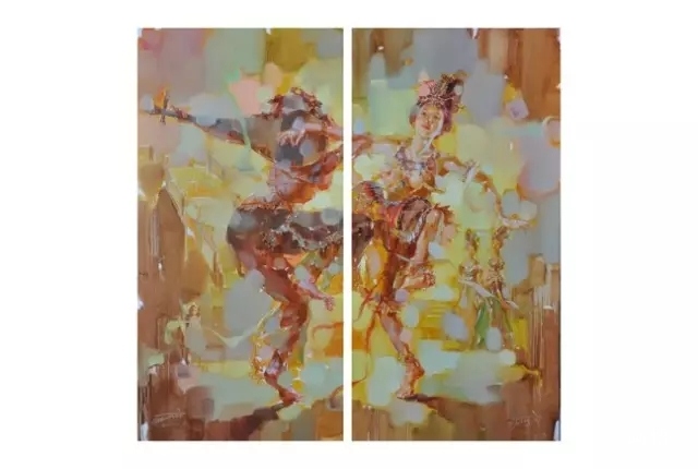 經(jīng)過兩年多準(zhǔn)備與思考,整理出一系例構(gòu)思方案,用西方的立體繪畫色彩和精神特征為創(chuàng)作主導(dǎo),創(chuàng)作出一批主題性以飛天伎樂舞為方向,畫面中追求概括提煉注重對(duì)客觀對(duì)象的感受,并入中國傳統(tǒng)水墨畫語言講求“以形寫神”抒發(fā)似與不似之間的感覺 。更多地講究“氣韻生動(dòng)”不拘泥于物象,手法追求意象對(duì)話融合為一體。