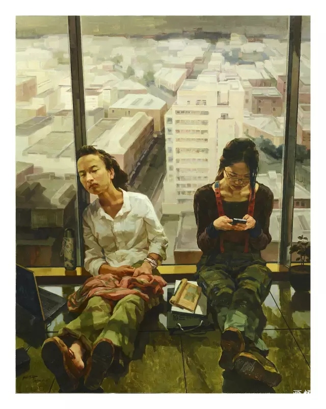 在這系列作品當(dāng)中,我運(yùn)用油畫語言來進(jìn)行自我內(nèi)心對(duì)話的一種訴說 ,創(chuàng)作過程比較周折。為了實(shí)現(xiàn)形與色之間融構(gòu),反復(fù)嘗試調(diào)整畫面的主色調(diào) ,概括和簡化細(xì)節(jié)等。我刻意把色彩的飽和度削弱 ,通過對(duì)構(gòu)成空間的理解和運(yùn)用,呈現(xiàn)出這一代人身上的彷徨迷惘......他們掌握了一定的知識(shí)技能,但又無法立刻融合于現(xiàn)實(shí)。對(duì)現(xiàn)實(shí)的疲憊和對(duì)理想的期待。而之所以繪畫這個(gè)主題,也是源于描繪我家的兒女 ,他們畢業(yè)之后的工作生活狀況 ,這是我想要表達(dá)的某種感受。