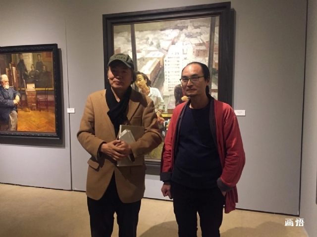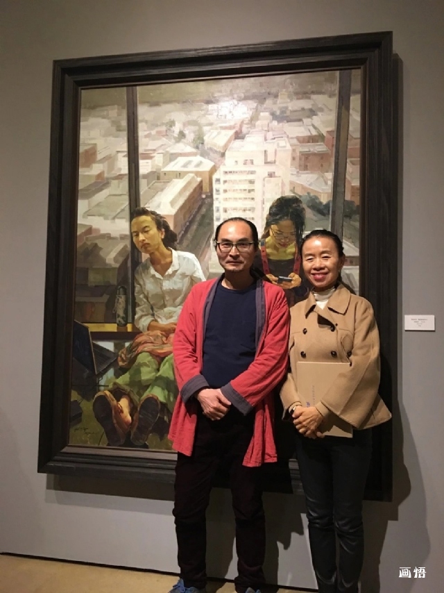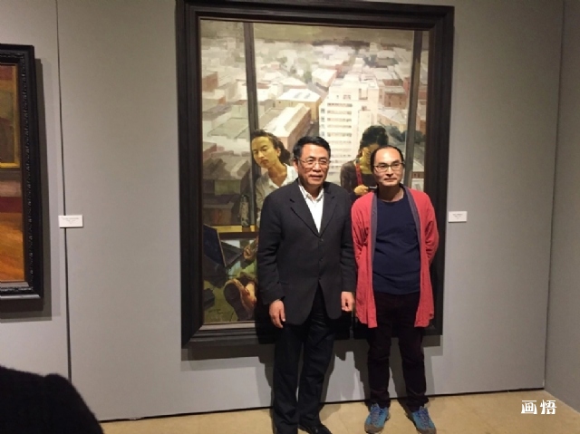 中國油畫院楊飛云院長參觀嚴(yán)老師的作品并合影