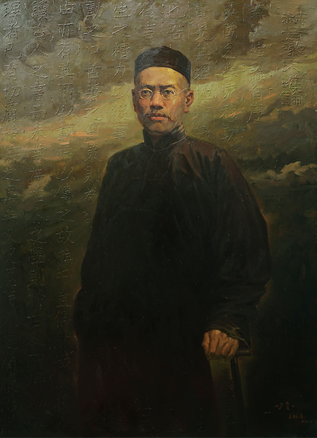 我認(rèn)為每一件作品都有其獨(dú)特的意義與價(jià)值,不存在哪一件最為重要之說(shuō)。例如,《閩水萬(wàn)古流》讓我首次系統(tǒng)地接觸歷史畫創(chuàng)作,深入了解福建歷史名人,使我構(gòu)建起歷史畫創(chuàng)作的方法論;《綠色豐碑——人民好干部谷文昌》讓我在歷史畫的創(chuàng)作上實(shí)現(xiàn)了質(zhì)的提升,因?yàn)闅v經(jīng)兩年的學(xué)習(xí)與創(chuàng)作,完成了大量草圖實(shí)踐,還有高強(qiáng)度的專家指導(dǎo),其意義自是不同;《譯壇先驅(qū)——嚴(yán)復(fù)、林紓、辜鴻銘》讓我在繪畫語(yǔ)言上有了自己的理解與突破,作品以文字為主線,利用材料基底塑形產(chǎn)生浮雕效果,畫面突破了二維的限制;《破冰之旅——胡錦濤會(huì)見(jiàn)連戰(zhàn)》是一件政治題材的領(lǐng)袖人物創(chuàng)作工程,畫幅巨大,通過(guò)這件作品我學(xué)會(huì)了如何駕馭領(lǐng)袖人物的形象以及在思想性上的表達(dá);而《陳寶琛》則讓我將在風(fēng)景創(chuàng)作中對(duì)光和色的追求運(yùn)用到了歷史題材美術(shù)創(chuàng)作中,讓歷史人物巧妙地還原到一種具有浪漫主義色彩的構(gòu)圖場(chǎng)景里。