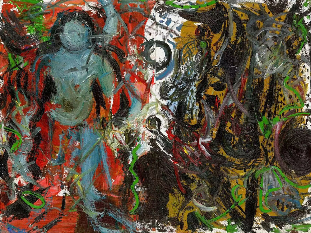 這份執(zhí)著和虔誠(chéng)絕非偶然。長(zhǎng)久以來,何海春深耕仰韶文化、馬家窯文化...于彩陶的形紋中觸碰上古先民的智慧,在遺址陶片里探尋文明的吉光片羽。他就像是一位執(zhí)著的匠人,將這些古老的文化養(yǎng)分精心研磨,最終化為創(chuàng)作中奔涌的靈感與力量。故而,在他的畫作中,既能看見石窟造像的慈悲莊嚴(yán),亦能品讀仰韶和馬家窯彩陶的樸拙靈韻,更可感知一位西北赤子骨子里的熱忱與坦蕩。