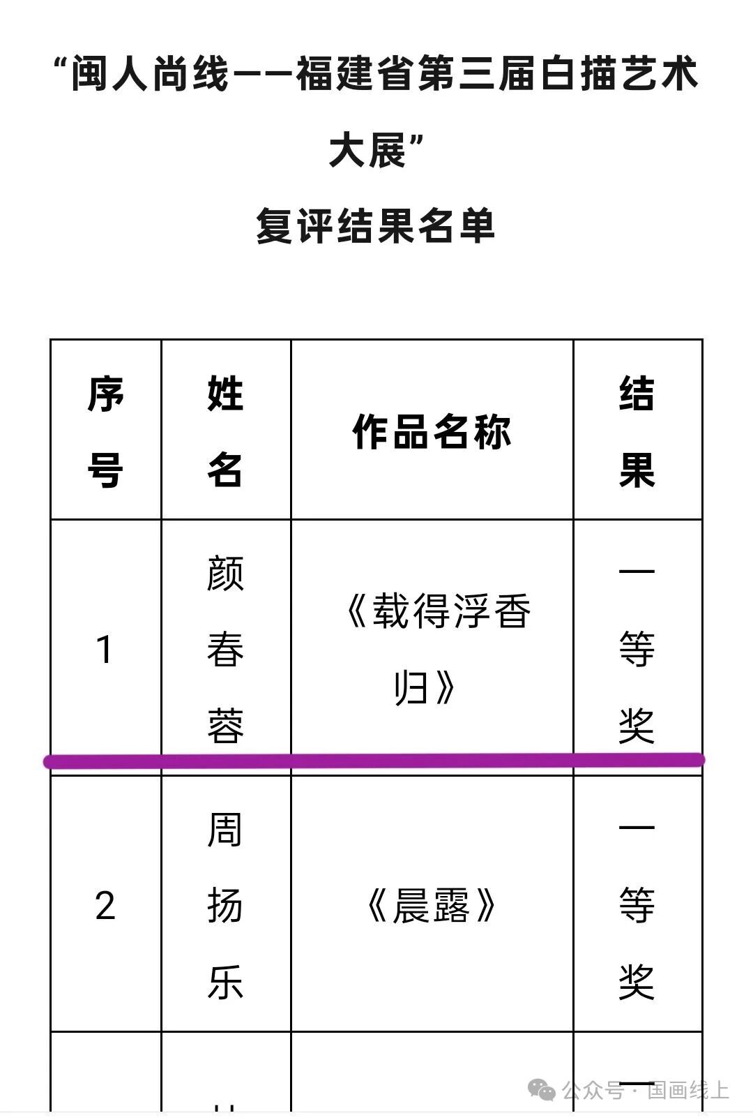 祝賀!OY美術(shù)工作室三位學員作品參加 “閩人尚線——福建省第三屆白描藝術(shù)大展”獲獎