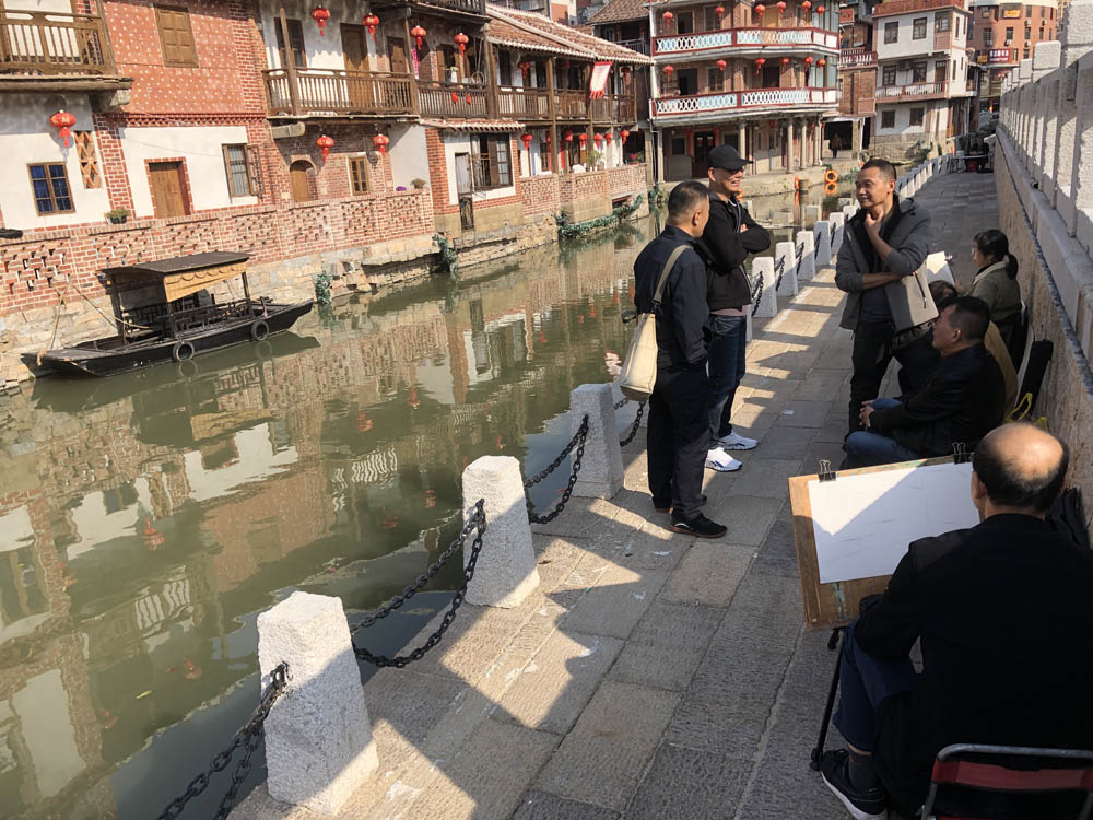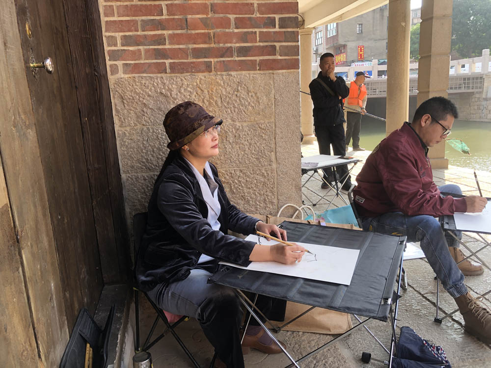 儀式上,區(qū)文聯(lián)向區(qū)美術(shù)家協(xié)會授旗,正式拉開為期3個月的蘿苜田主題美術(shù)寫生活動序幕。隨后,20多位涵江美術(shù)家選取不同場景,支起畫架、展開畫板進行實景描摹。