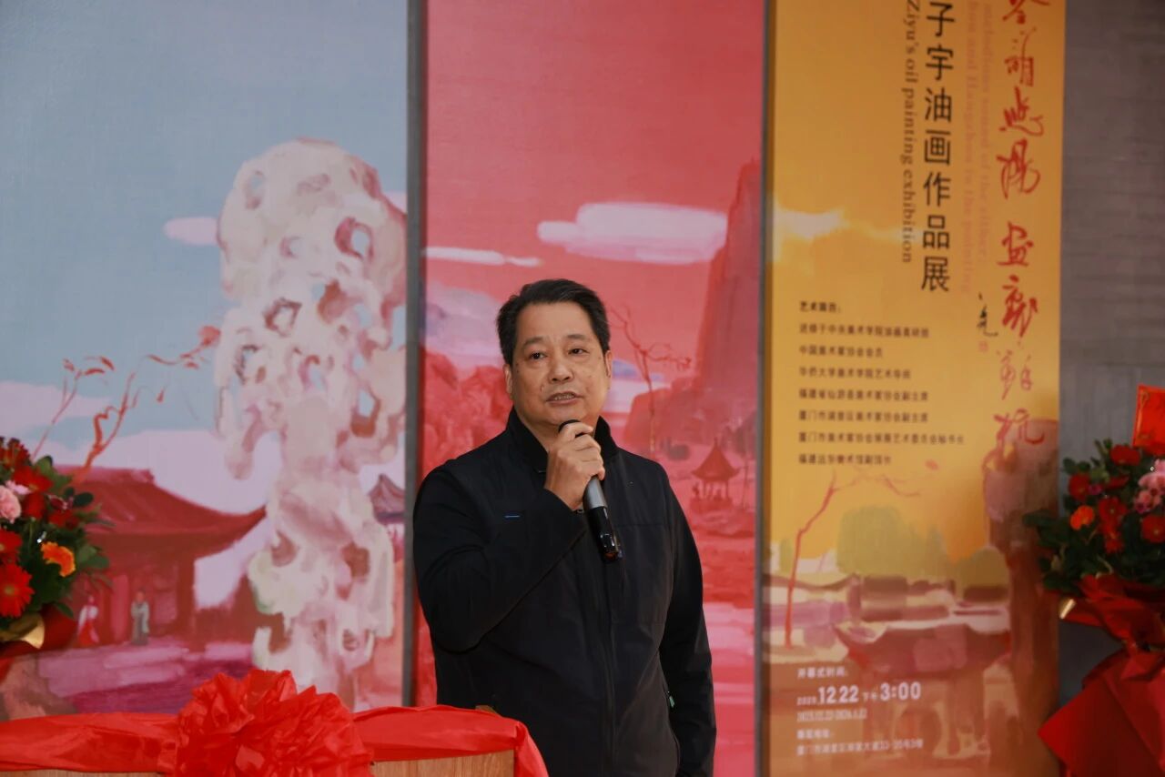 本次展覽匯集藝術(shù)家嚴(yán)子宇五十余幅油畫作品,以“繁花-枝干-土壤”為策展邏輯,系統(tǒng)呈現(xiàn)其十余年藝術(shù)探索的完整脈絡(luò)。展覽不僅是嚴(yán)子宇創(chuàng)作生涯的集中展示,更被視為其對“油畫東方化”命題的一次深度實(shí)踐,構(gòu)建起一場跨越中西、貫通古今的視覺對話。著名書法家、廈門市文聯(lián)副主席王元為此次畫展書寫了主題,還專門撰寫了一篇藝術(shù)評(píng)論。