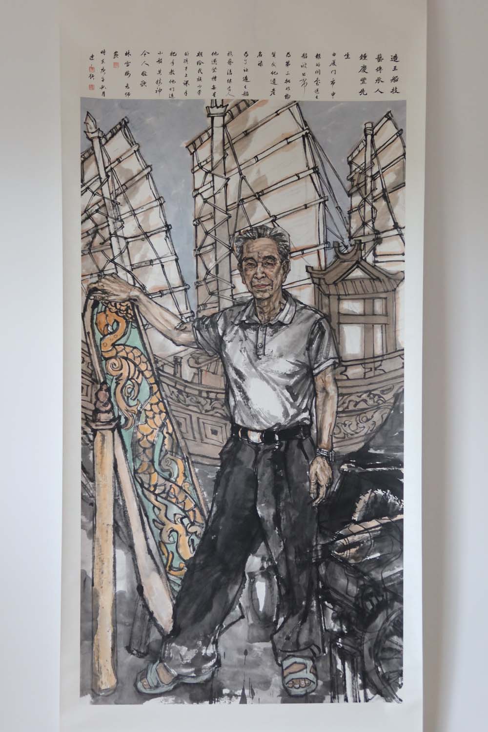 《造王船技藝傳承人》180X97cm入選中馬“送王船”主題美術(shù)作品展