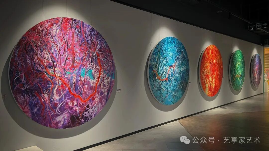 《藤蘿系甲》系列則展現(xiàn)了藝術(shù)家創(chuàng)作維度的多元探索。藤蘿枝蔓纏繞,是自然生機的靈動寫照;“系甲”二字暗藏深意,暗合堅韌不拔的品格追求。涂啟先以奔放灑脫的筆觸、濃淡相宜的色彩,讓藤蘿在畫布上舒展交織,或繁密如織盡顯生機,或疏朗有致暗藏清雅。大幅作品氣勢磅礴,小尺幅作品意蘊悠長,在虛實相生的構(gòu)圖中,既呈現(xiàn)了藤蘿的自然之美,更賦予其人文精神的象征意義,達成了自然意趣與情志追求的完美交融。