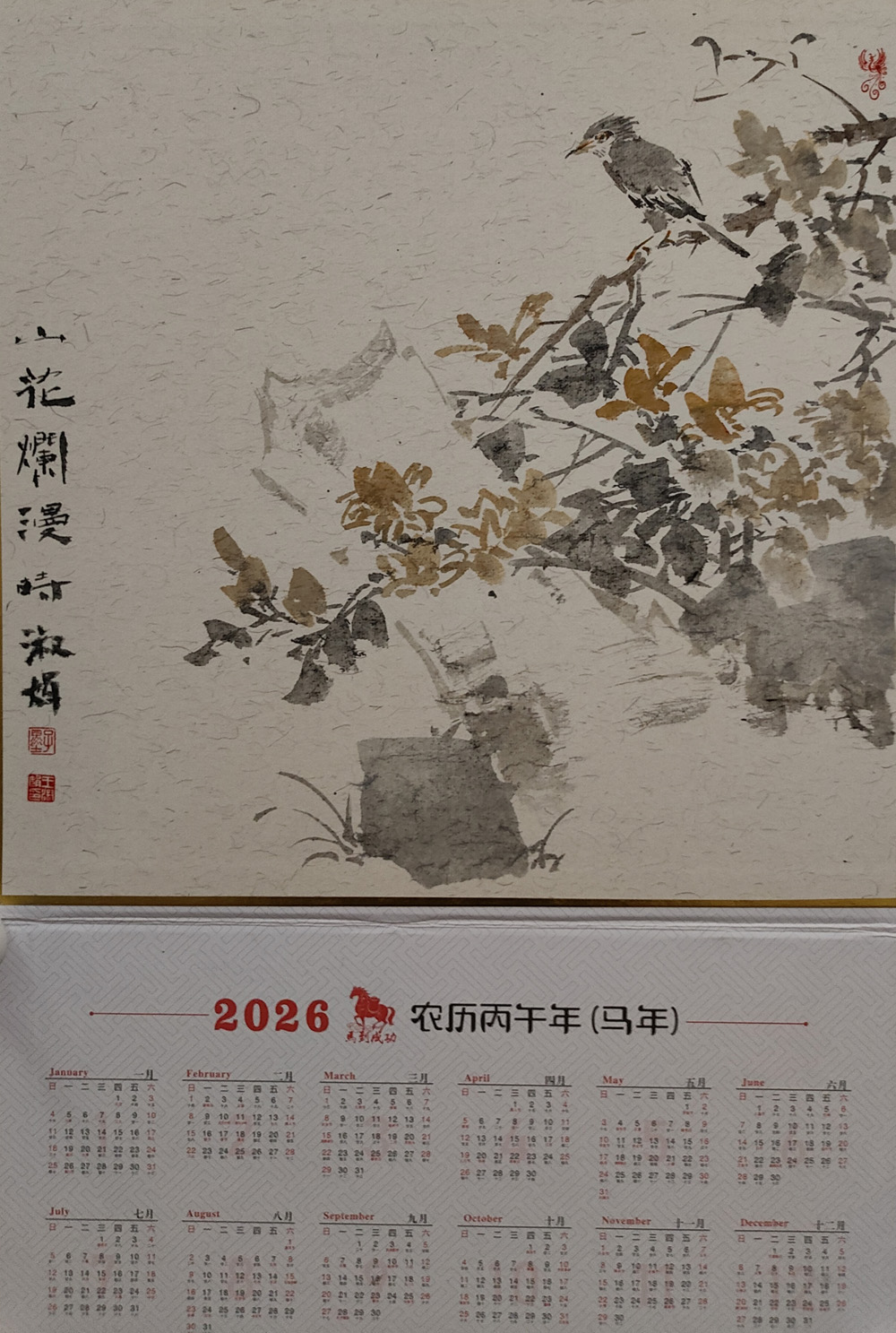 年歷一頁頁變薄,時光一寸寸流淌。它不像電子日歷那般冰冷精準,卻以筆墨的溫度,讓我們在鋼筋水泥的叢林中,守住一份與自然的聯(lián)結(jié)。正如蘇軾所言“此心安處是吾鄉(xiāng)”,案上年歷的山水花鳥,不僅是視覺的慰藉,更是心靈的歸處。在快節(jié)奏的當下,愿我們都能于翻頁之間,拾取古人的從容,讓心寄于丘壑,讓時光歸于安然。與之共勉!