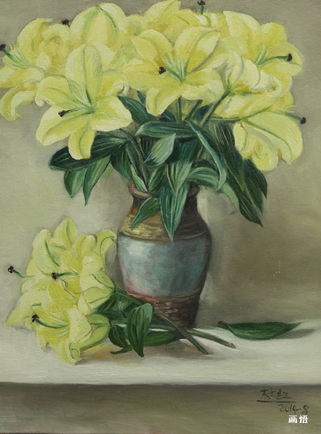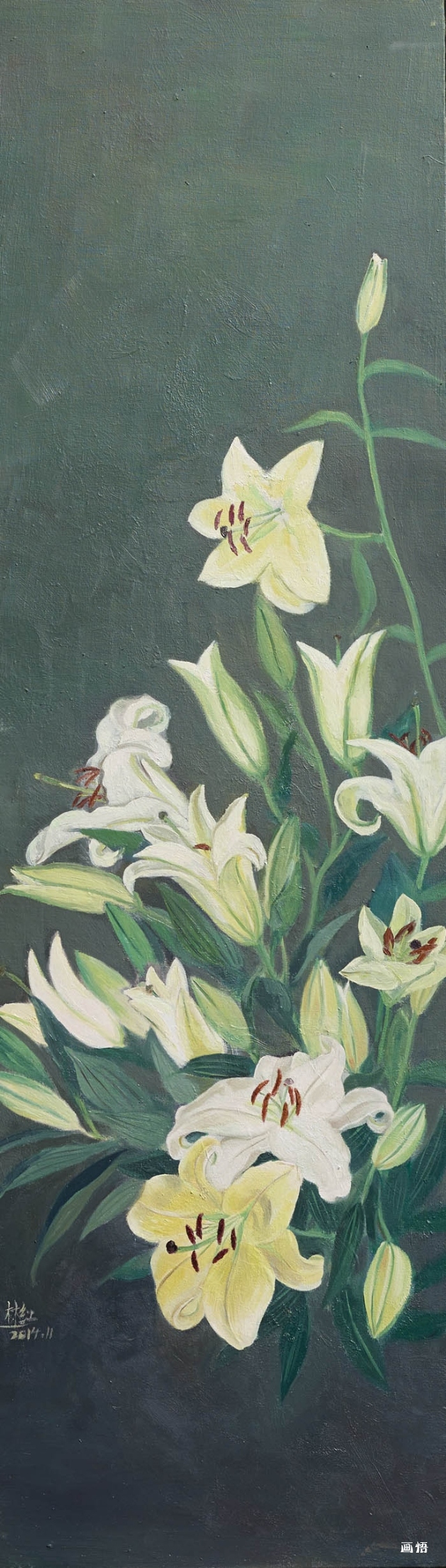 谷中百合之二170x50cm油畫