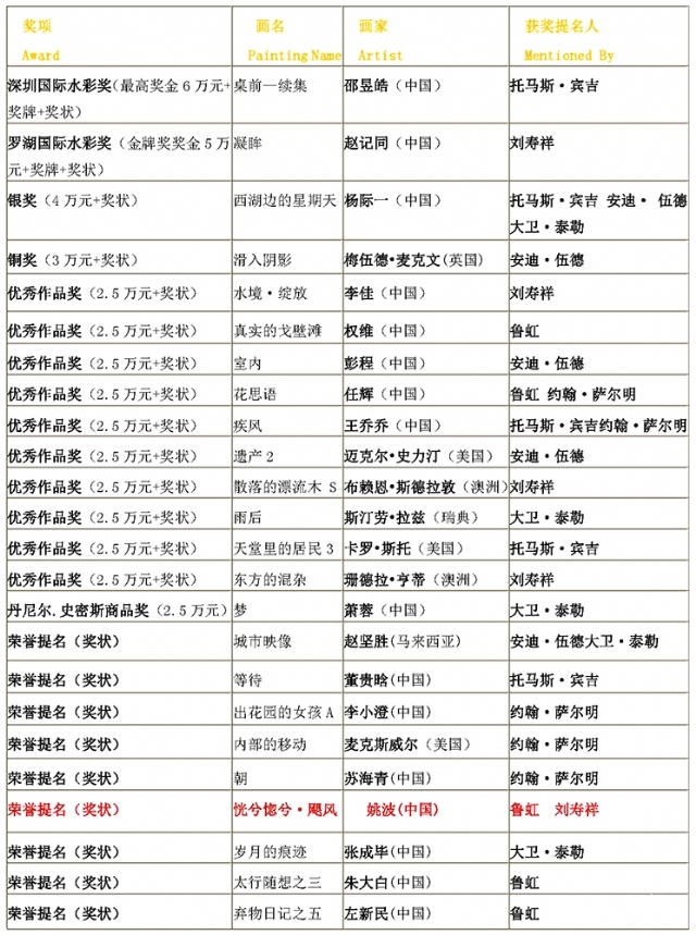 2013-2014深圳國(guó)際水彩畫(huà)雙年展評(píng)審結(jié)果公示
