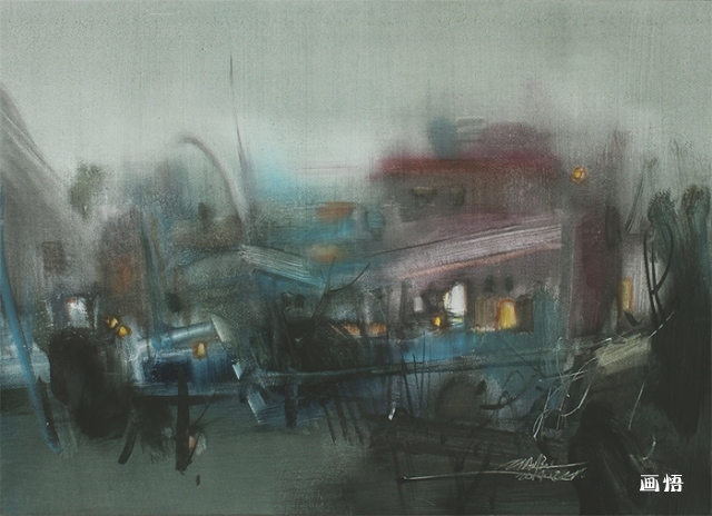 福建省五位受邀畫家之一的華僑大學建筑學院姚波教授,以《恍兮惚兮·聆訓》《恍兮惚兮·“嘉庚”校園》《恍兮惚兮·晚霧》《鬧熱市井》《心蔭幽眇》等五幅作品參加了此次展覽,其中《恍兮惚兮·晚霧》被莞城美術(shù)館收藏。