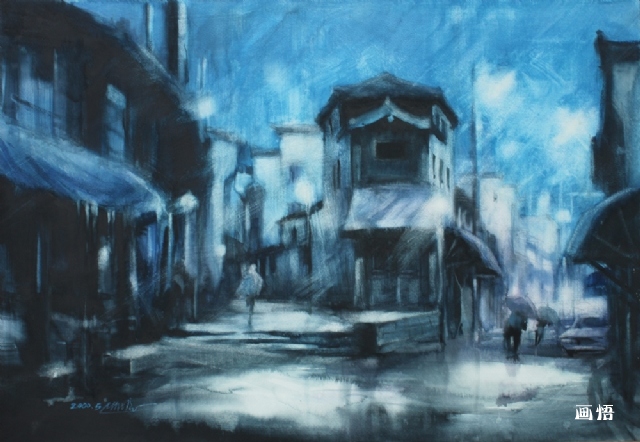 《古歙雨夜》79x54.5cm 水彩 2002福建省水彩畫展 2000