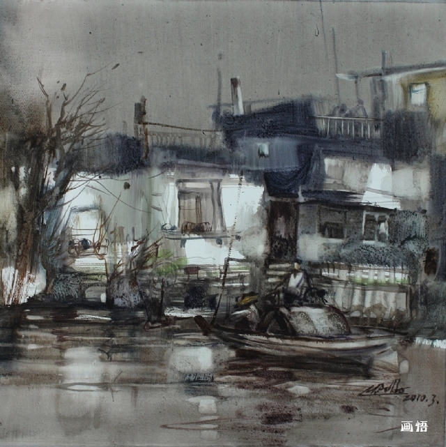 《墨色記憶》53x53cm 水彩 2010年3月