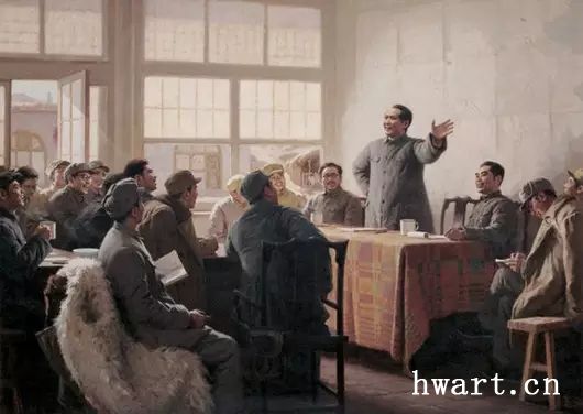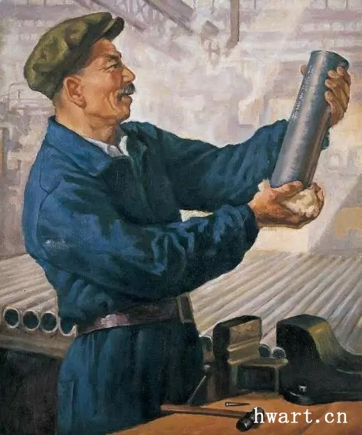 靳尚誼 傅植桂1954年作。把第一根無縫鋼管獻(xiàn)給毛主席