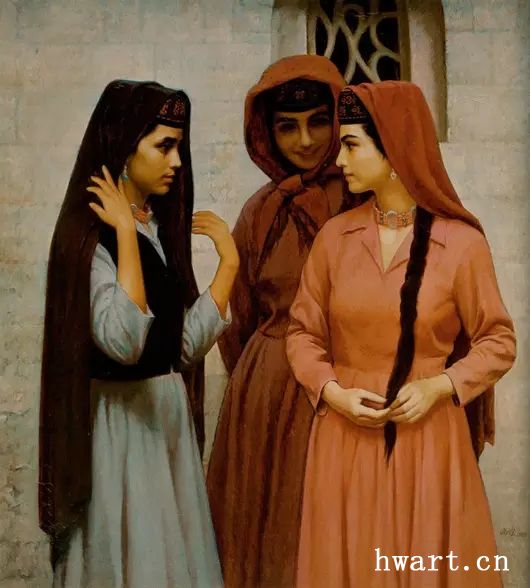 三個(gè)塔吉克少女 100×90cm 1985 布面油畫