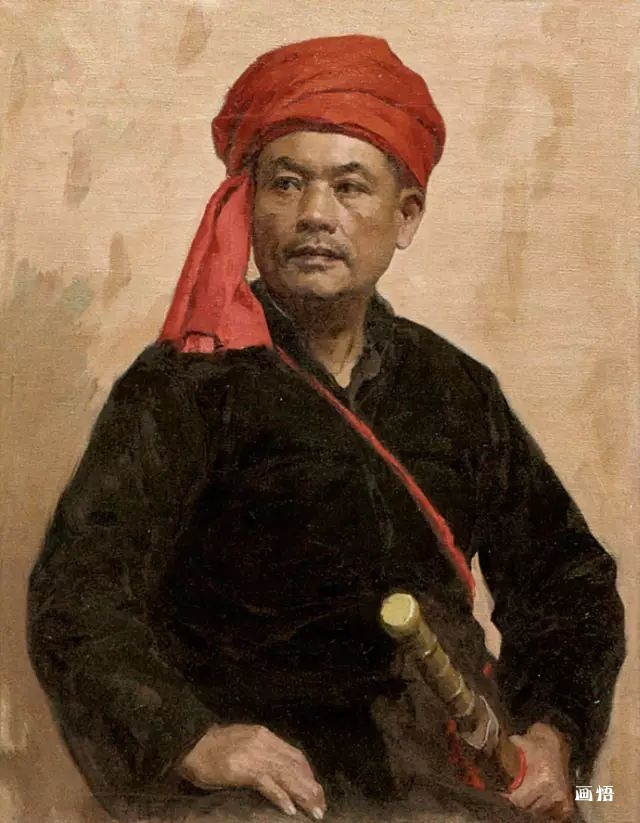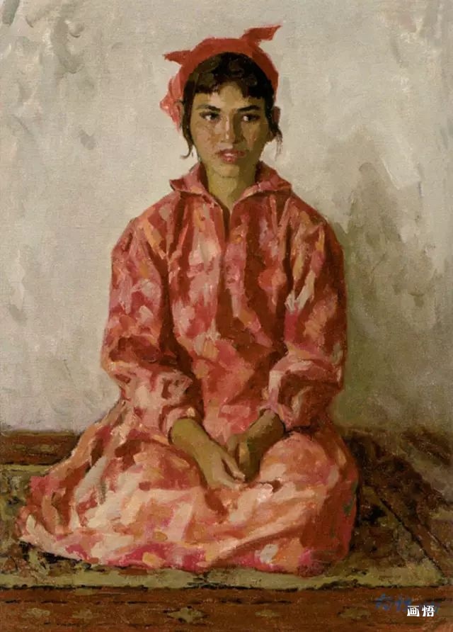 靳尚誼《披紅頭巾的塔吉克婦女》52×40.1cm 1981 紙板油畫(huà)