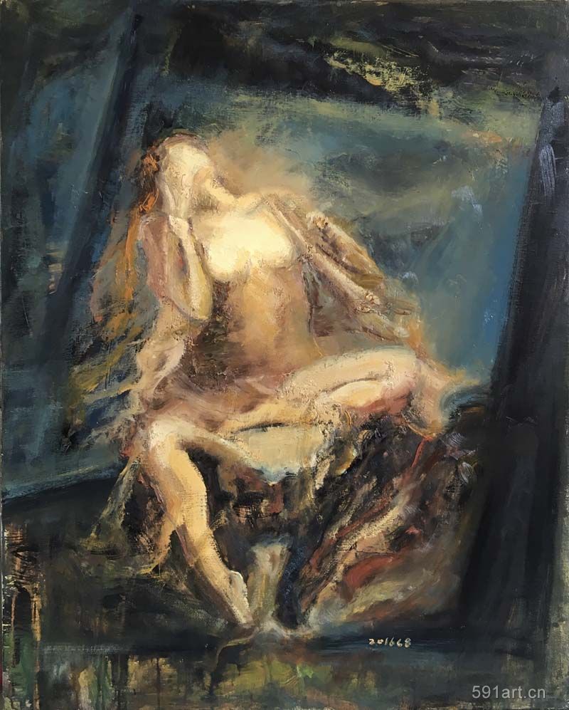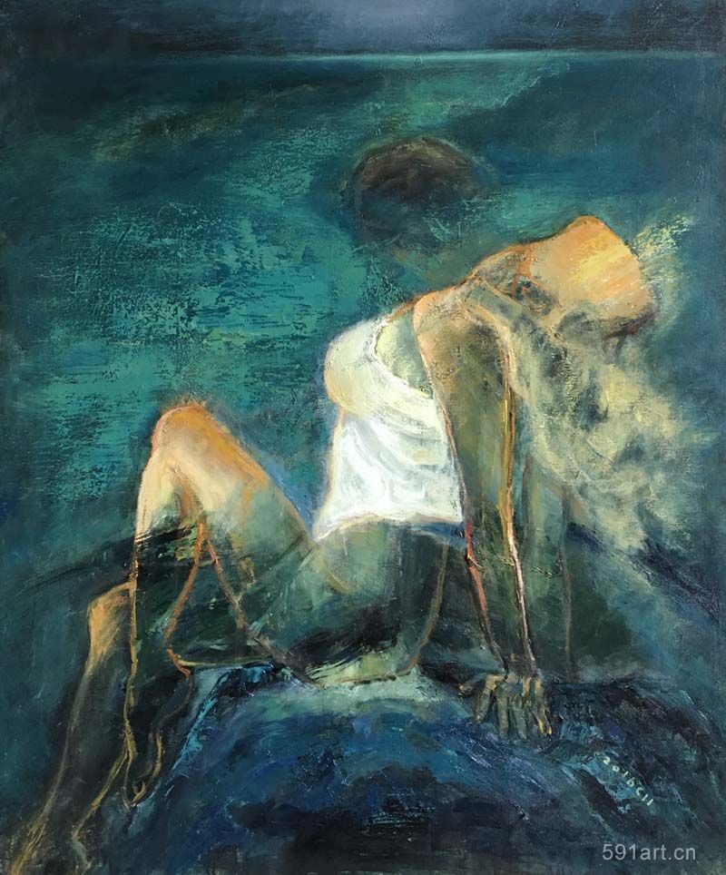 雖歷經(jīng)一年,但從時(shí)間上遠(yuǎn)不止365天的堆積與醞釀,圖中人物描繪,盡情地訴說心中的那份涌動,細(xì)膩地描述女性心中的那份細(xì)柔的遐想,讓一點(diǎn)一滴的情懷鑲嵌布面閃著光亮的畫眼,每每完成一作品,總能釋懷,仿佛與陌生的行者進(jìn)入一次心靈相遇,而有時(shí)卻莫名的悲傷;有時(shí)卻春欲萌動……二種情愫之間總是釋放著一種過于單純和原始的語言,由于自我的本性使然,作畫過程中無意讓自己精疲力盡,當(dāng)期待中那種感動的思緒來訪問時(shí),最終還是沒有讓精神個(gè)體得到真正的滿足,故,還試圖不停尋找可以更好的暢游的方式,到底用何種名不經(jīng)傳的繪畫方式和別具一格語言使其日久經(jīng)營的色彩和形體得到統(tǒng)一,最后使內(nèi)心的呈現(xiàn)展示無疑?這是我的思考。