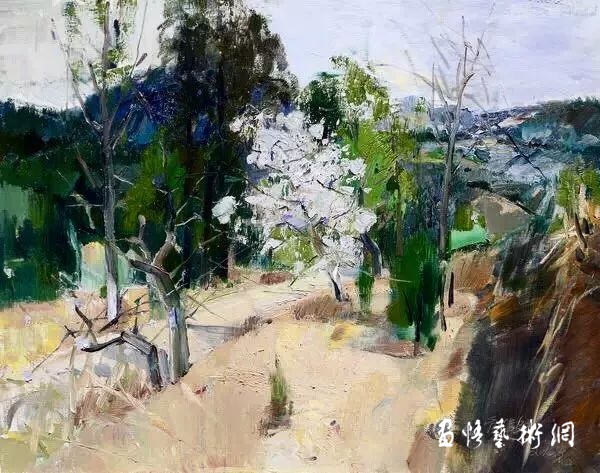 在當今油畫風景寫生大軍中,她是位較有特色的女將。有人說,她寫生時豪氣滿懷,大刀闊斧,揮灑自如,那股勁兒,那種山東爺們女漢子的范兒。這實在是投身自然之中自在而逍遙的生命體驗,一種忘乎所以的生命形式。如果說,她面對室內(nèi)的靜物還只能在有限的空間創(chuàng)造出了一個絢爛靈動的迷人的畫面空間,那么,在廣闊無垠的大自然中,她又將創(chuàng)造怎樣的一個所見、所想、所愛的心中的自然?