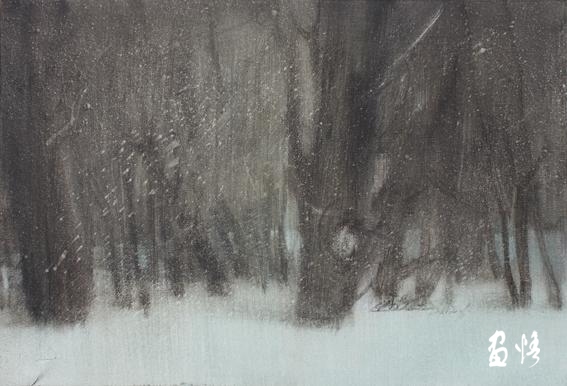9、姚波《寒林》水彩 78x53(cm)