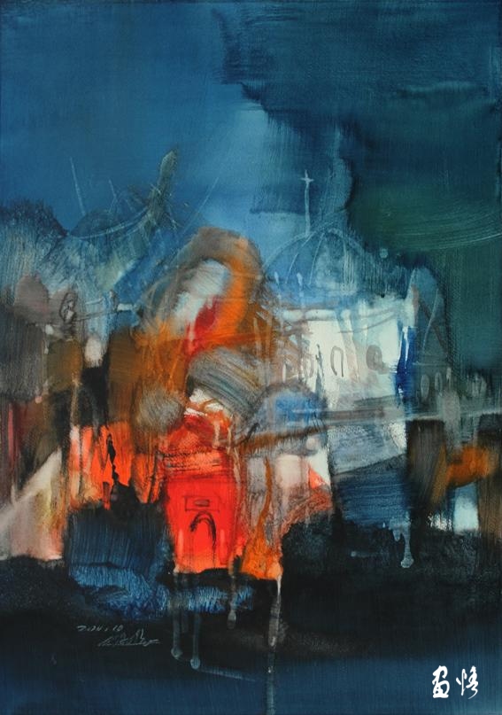 20、姚波《都市行草?夜籟》水彩 56x77(cm)