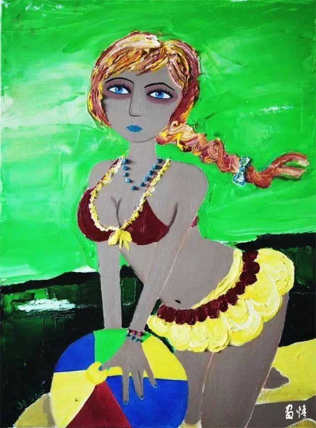 胡山山的畫中之雅拙不是裝出來的是從骨子里面流露出來的,她的畫給人最大的感覺是無數(shù)的想不到!頭發(fā)是彩色的嗎?她說是!也許在她的世界里就是。臉是黑色、蘭色、紅色的嗎?她說是!也許在她的世界里就是。造型色彩的豐富中充滿雅拙之氣的同時油畫技能的特別運用使其作品展現(xiàn)出繪畫特有的魅力。我想我們的生活我們的藝術(shù)需要這樣的畫家?!猙y 山佳(編輯整理:何紅林、徐長平)