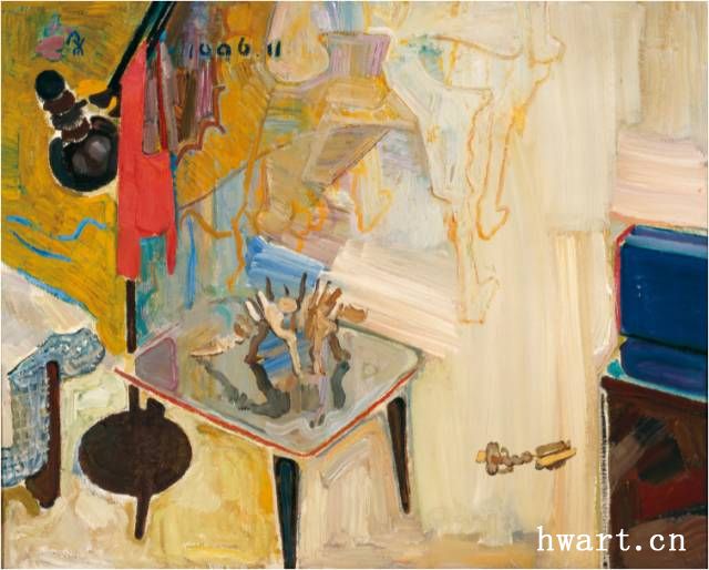 《帶恐龍玩具的小桌》布面油畫 72cmx90cm 1997 年