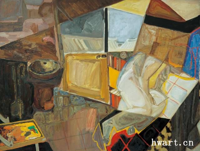 《窗外有雪》 布面油畫 100cmX130cm 1993 年
