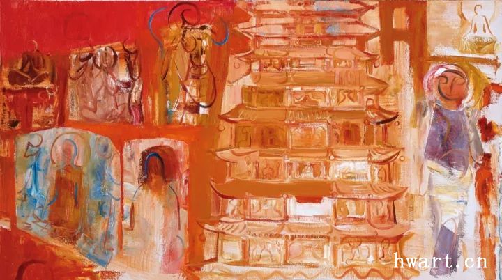 《石窟之一—敦煌》布面油畫 90cm×160cm 2017 年