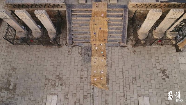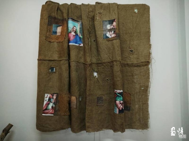 埃及法老王們用石頭給自己建造一個希望能夠抵御時間流變的金字塔陵寢,寄托著對來世的追求,對永生的原始信仰,以求能夠永遠享受那份榮華尊貴,把個人的欲望以石頭和千萬個奴隸的性命來堆砌。而朱新戰(zhàn)用那些名畫縫補的麻袋來建造他的金字塔,顯然,這不是在用易腐朽的材料來構筑屬于他個體的欲望與夢想之巴別塔。在寓意著裹尸布的麻袋建構的金字塔,象征一次終結與打開,是對當代藝術那些固有的認知,觀念,形態(tài)和形象的終結,同時是一次對未來和未知,以及無限可能的打開。把藝術指向的物品轉化為物質的空間,并進入到真實社會生活中,成為一個社會空間。麻袋取代堅固的石頭,就把從歷史通往未來的時間截停在當下,從而人在永恒時空里的短暫與渺小轉化為今天的實在與生動。