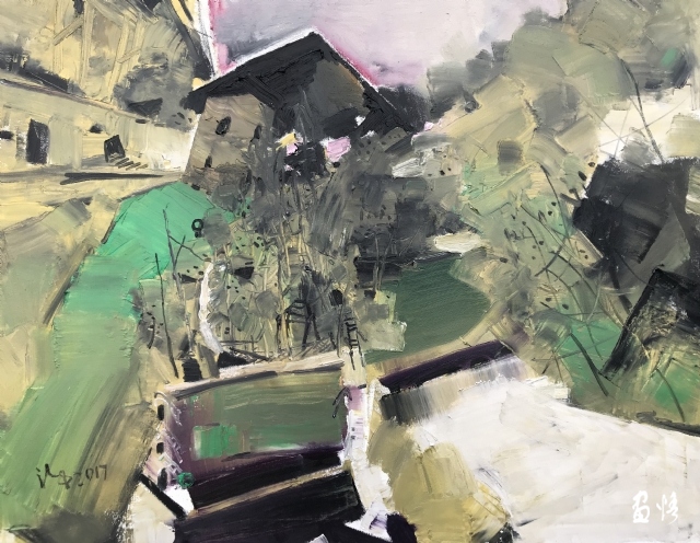 轉(zhuǎn)角有春100x150cm,布面油畫(huà),2017年
