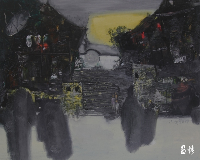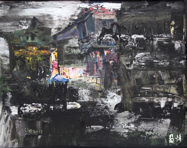 古鎮(zhèn)之夜70x90cm,布面油畫(huà),2017年