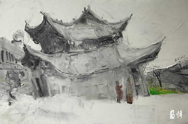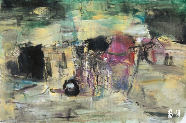 古鎮(zhèn)50x60.5cm,綜合材料油畫(huà),2016年