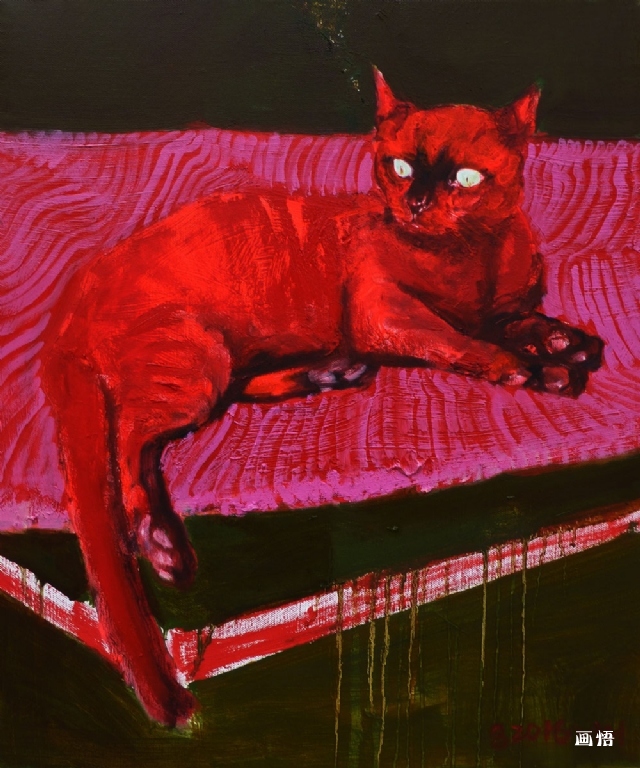 《紅貓》布面油畫60x50cm陳明華2016 (8)