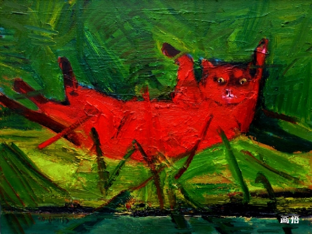 《紅貓》布面油畫60x80cm陳明華2016 (3)