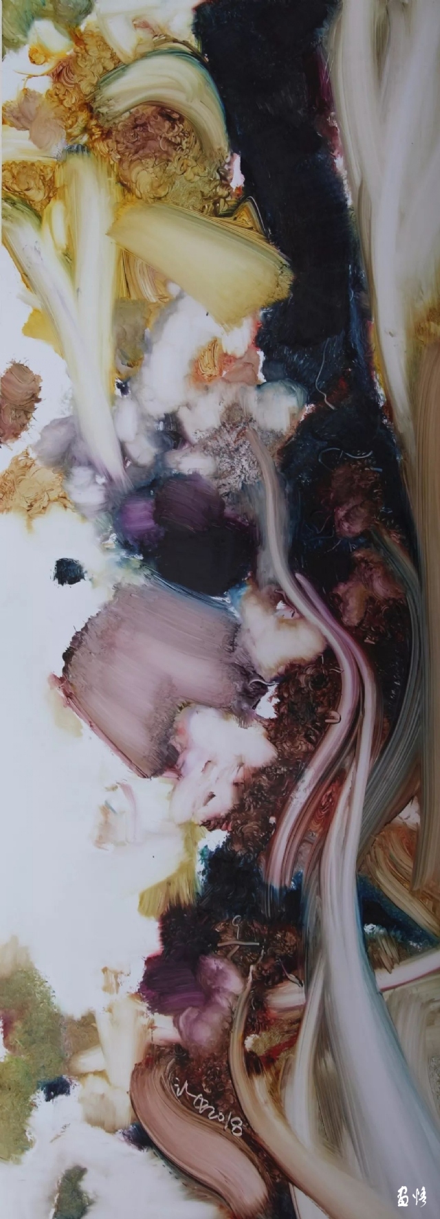 生命和世界,藝術(shù)和生命究竟是什么關(guān)系?無數(shù)的解答形成無數(shù)的答案,而崔治中試圖用抽象的圖式去表現(xiàn)這千萬種解答,沒有文字卻比文字更具力量。他沒有模擬現(xiàn)實或現(xiàn)實之外可感的具象,他放棄了原有了固定或形成的模式,他在用石頭砸自己的腳,這種圖式看似無形卻形態(tài)萬千,這種圖式看似盲目卻方向明晰,將無形的精神世界,立體地、夢幻地呈現(xiàn)出來,他的作品有表現(xiàn)主義里面的個人情結(jié)和浪漫。他一直探討精神極限、或者說世界的彼岸,懷著對理想、人類本性的渴望,這種至真、至純的狀態(tài),已經(jīng)超越了個人表現(xiàn)主義的局限,他在延伸和沖擊當(dāng)下,這種超抽象的流動或聚集,形成了一種力量,這種力量,向世界的內(nèi)部和深處拓展。崔治中作品不要描述和故事,也不需要情節(jié)和雕鑿,他在嘗試更豐富的知覺世界,暗示物的內(nèi)部和背部,呈現(xiàn)看不見的真實世界。