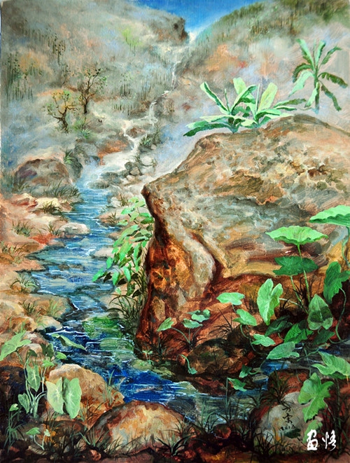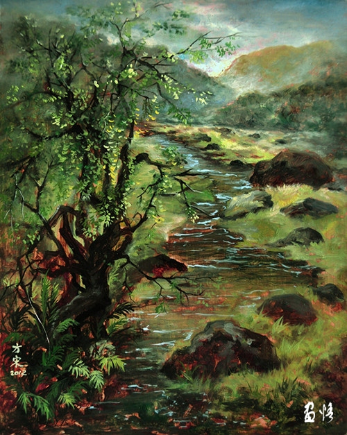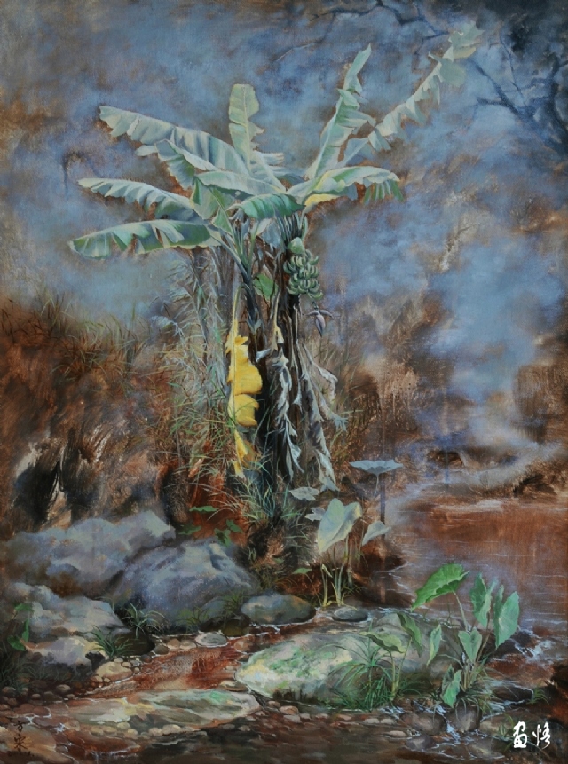 《秋蕉映泉》 布面油畫(huà) 60x80cm 方宋 2012