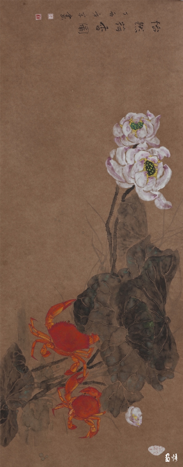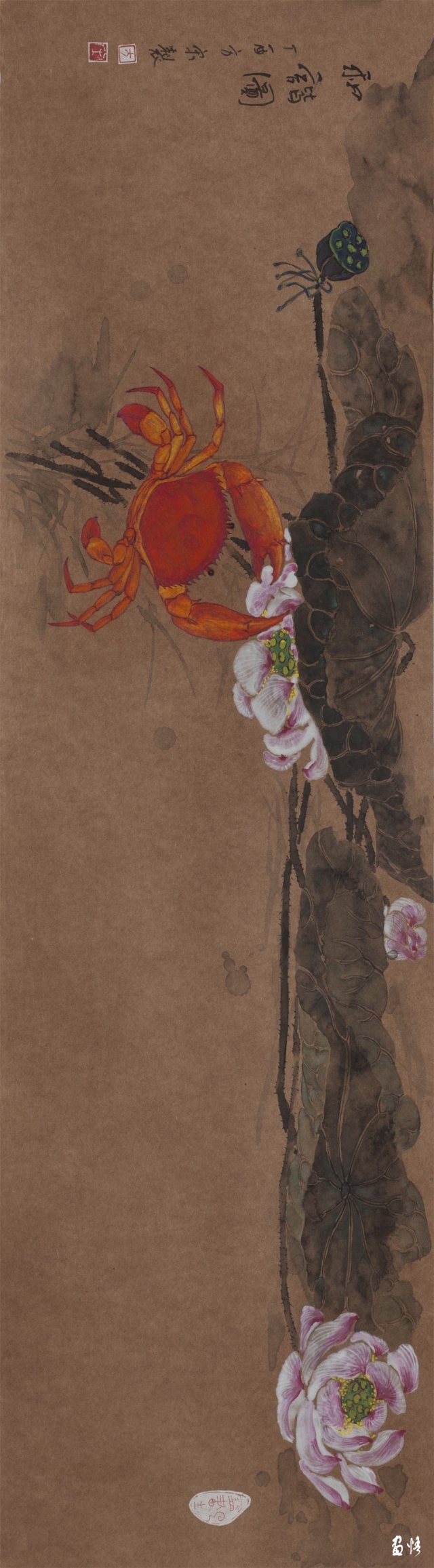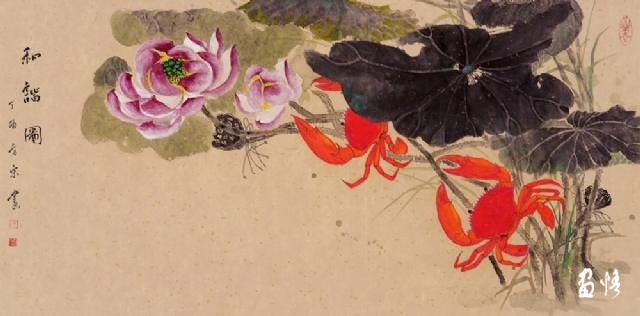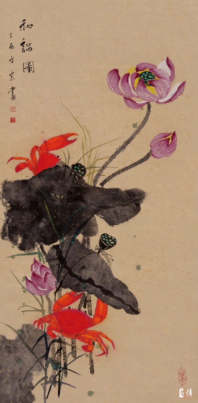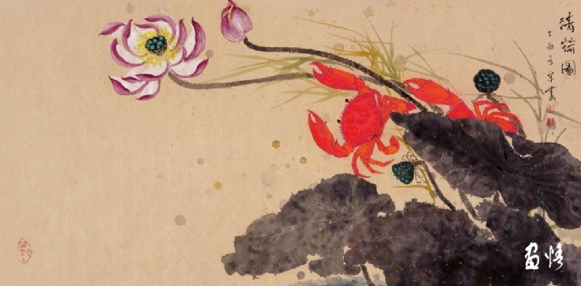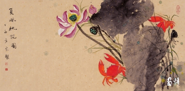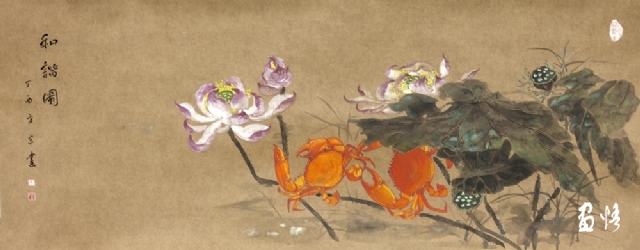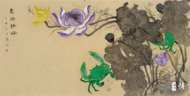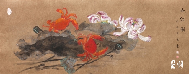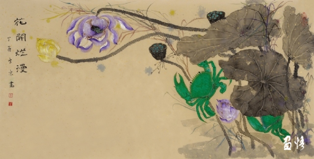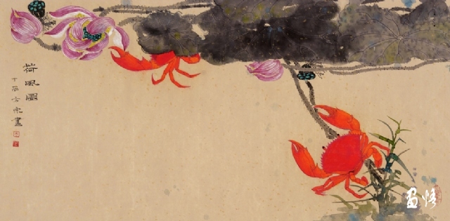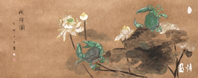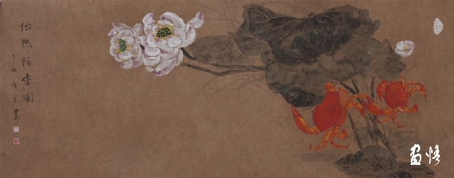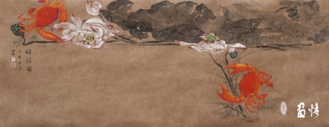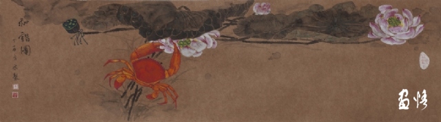《荷蟹情》 巖彩紙本國(guó)畫 25x60cm 方宋 2016