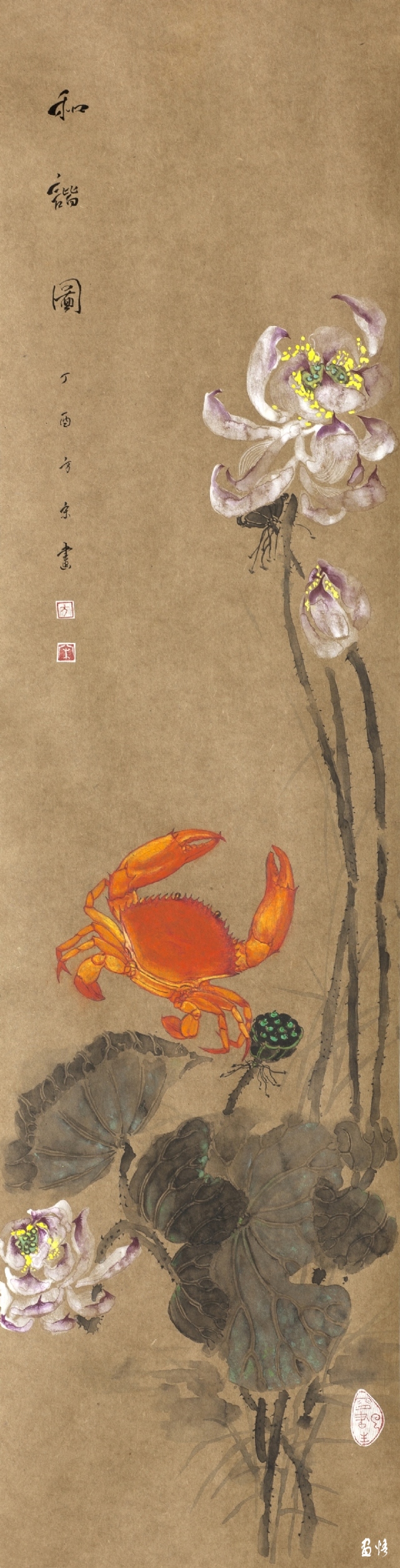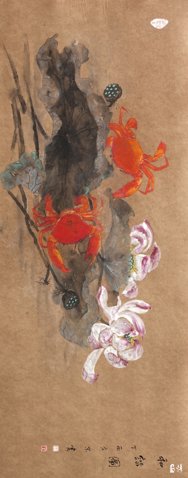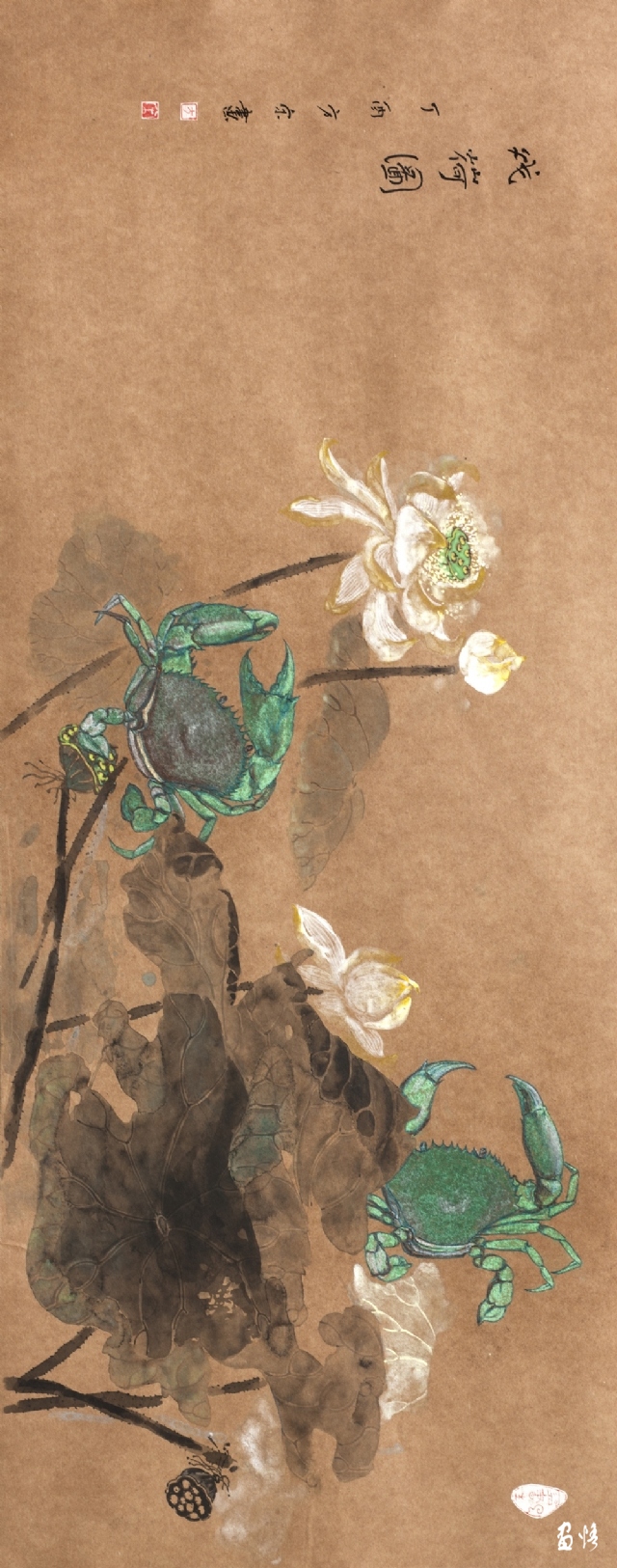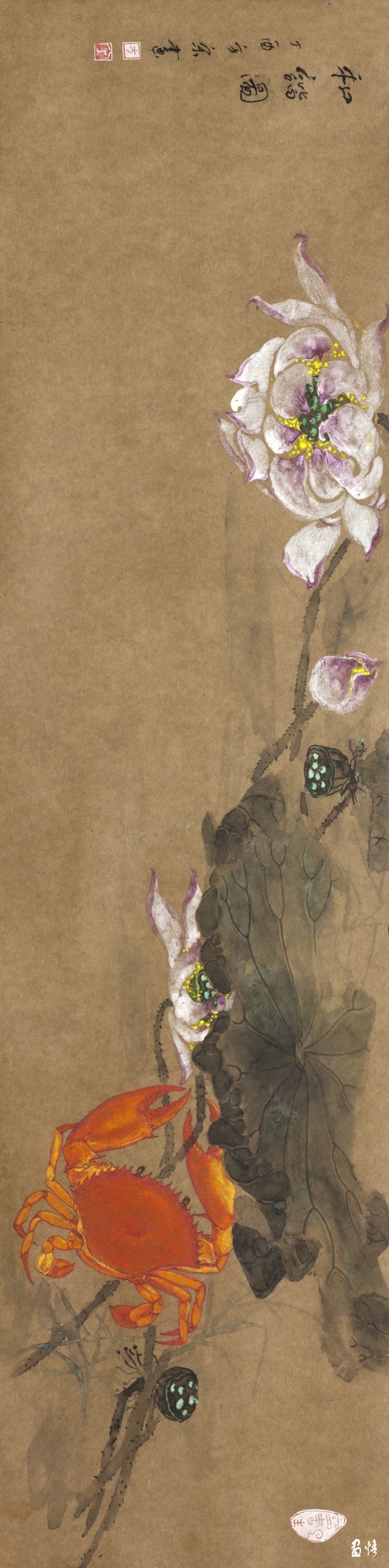 《荷蟹情》 巖彩紙本國(guó)畫 25x60cm 方宋 2016