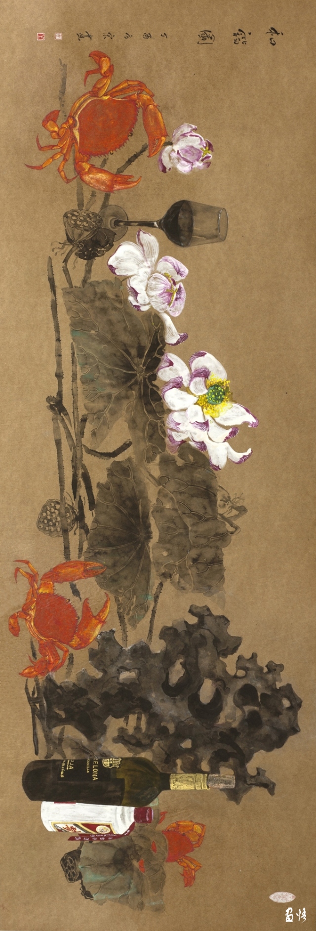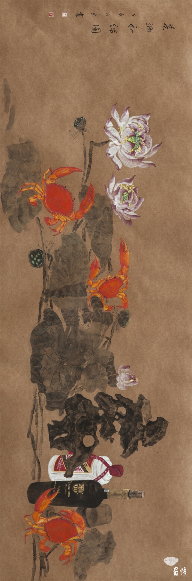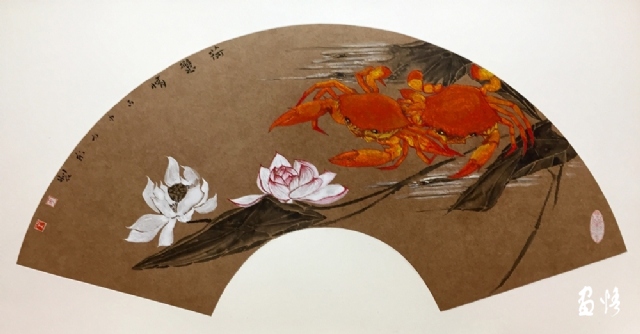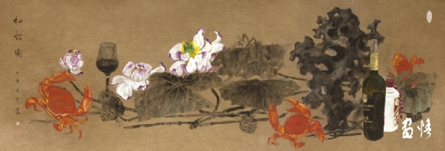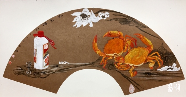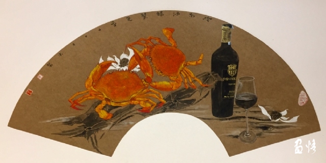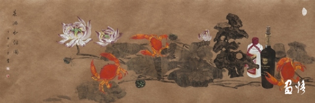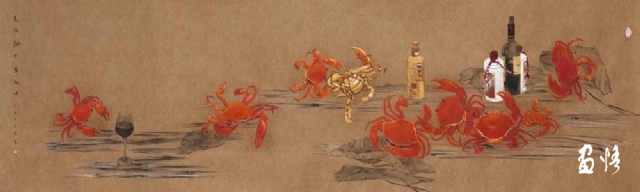 《嶺南酒醇蟹更香》 巖彩紙本國(guó)畫 25x60cm 方宋 2016