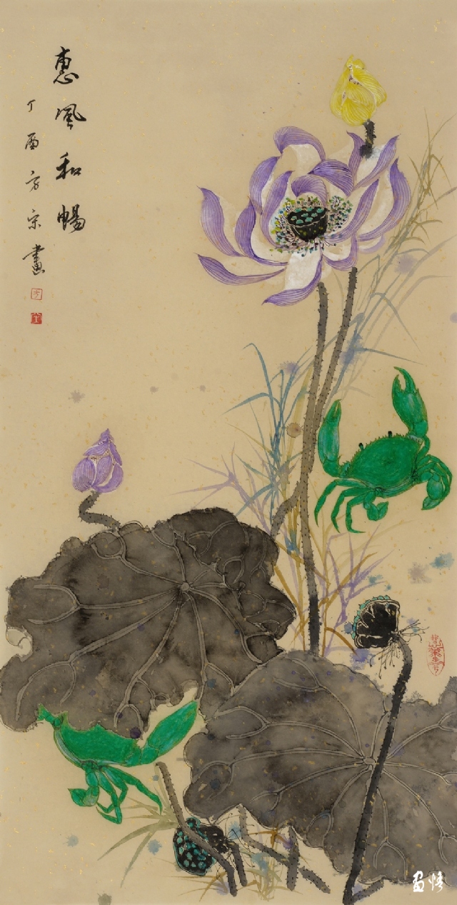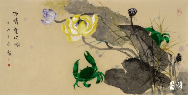 《雨晴蟹歡圖》 紙本國(guó)畫 35x68cm 方宋 2017