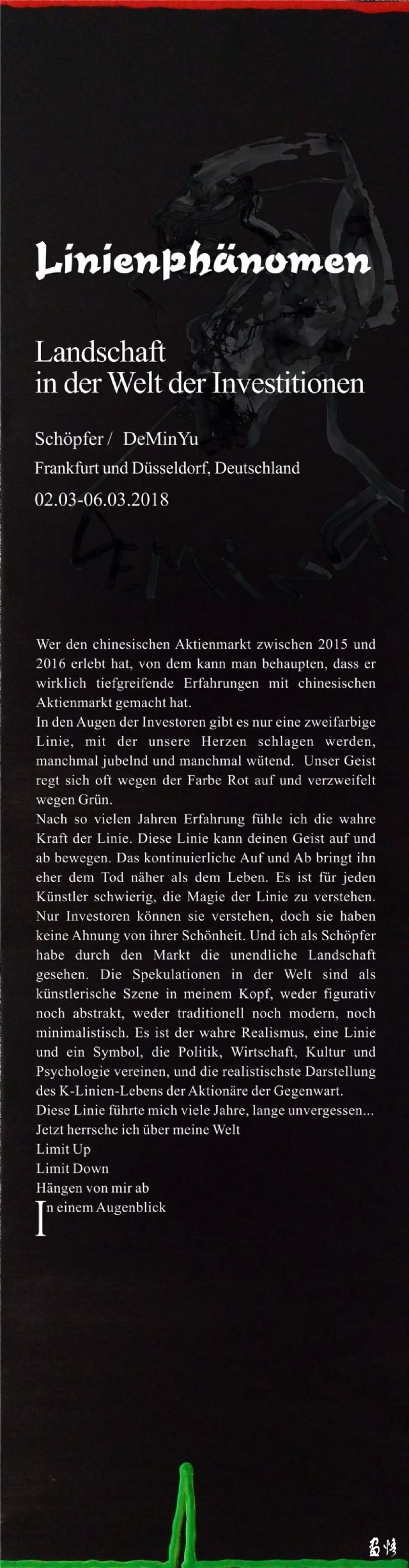 此番來到法蘭克福辦畫展,余德民的《線象》系列作品,即是以中國股市跌宕起伏的深度感受為創(chuàng)作動機。