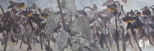 《葵之記憶2》90*270.全國油畫作品精品展—青竹畫材杯獲優(yōu)秀獎(jiǎng)-(2016國家畫院美術(shù)館)