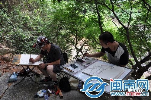 昨日下午,山水畫家們一行來到寫生第一站:天成山。這座廈門入泰第一山成名于明朝,有宋代驛道、明代古寺、戚繼光抗倭駐軍遺址,士大夫楊瑩鐘古寨等遺址古跡,林木蔥郁,古洞幽深。歷朝歷代,不少文人墨客造訪此地,并寫下諸多佳句華章。