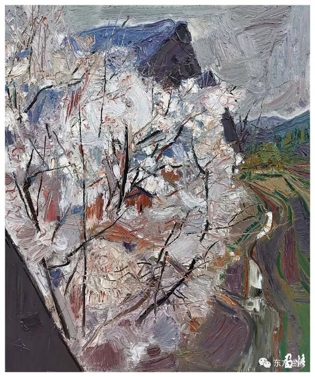 當我們面對楊榮孫的這些油畫寫生作品時,卻使人感受到了一種別樣的情懷!無論是他的《被遺棄的家園》系列、《老房》系列、還是《窯洞》系列,畫布上那飽含韻律和節(jié)奏的縱橫筆觸、講究平面變化和現(xiàn)代構成的畫面章法,還有經(jīng)過畫家高度提煉和概括的豐富色彩,形成了與眾不同的藝術特色:大氣、厚重。